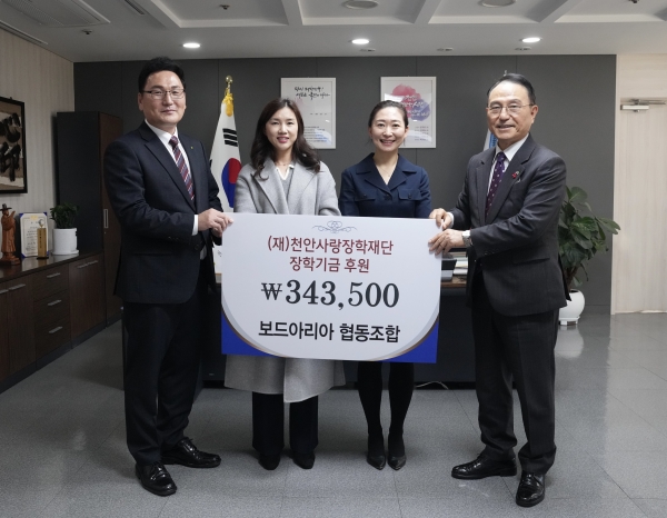 천안사랑장학재단 이사장인 박상돈 천안시장은 “지역의 인재육성 및 어려운 학생을 위해 소중한 장학금을 후원해주신 보드아리아 협동조합원 모두에게 감사드리며 천안사랑장학재단도 인재 육성을 위해 열심히 노력하겠다”고 말했다.