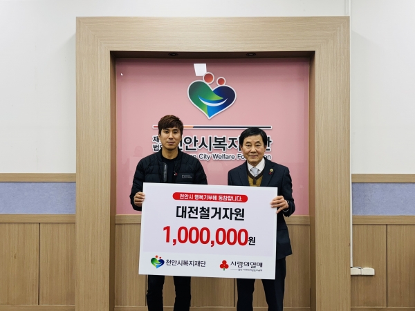 [세종타임즈] 천안시복지재단은 3일 대전철거자원이 후원금 300만원을 전달했다고 밝혔다.