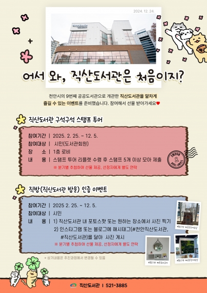 지난해 12월 개관한 직산도서관은 천안시의 9번째 공공도서관으로 시민들이 도서관을 알차게 즐길 수 있도록 다양한 이벤트를 마련했다.