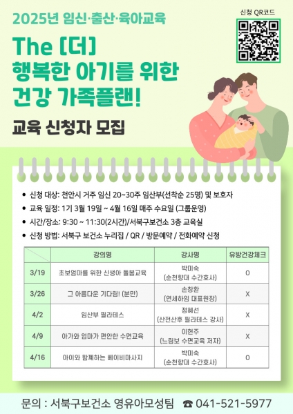 [세종타임즈] 천안시 서북구보건소는 오는 3월 19일부터 ‘The 행복한 아기를 위한 건강 가족플랜’을 운영한다고 17일 밝혔다.