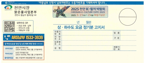 [세종타임즈] 천안시 맑은물사업본부는 상하수도요금 고지서에 정보무늬를 도입한다고 19일 밝혔다.