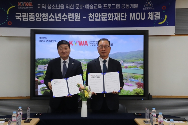 국립중앙청소년수련원 본관 회의실에서 열린 이번 협약식에는 안동순 천안문화재단 대표이사와 정철상 국립중앙청소년수련원 원장 등 주요 관계자가 참석했다.