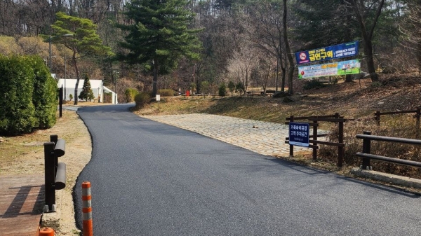 공사는 이용객들이 쾌적하고 안전한 환경에서 태학산자연휴양림을 즐길 수 있도록 야영시설 내 도로를 아스콘으로 재포장했다.
