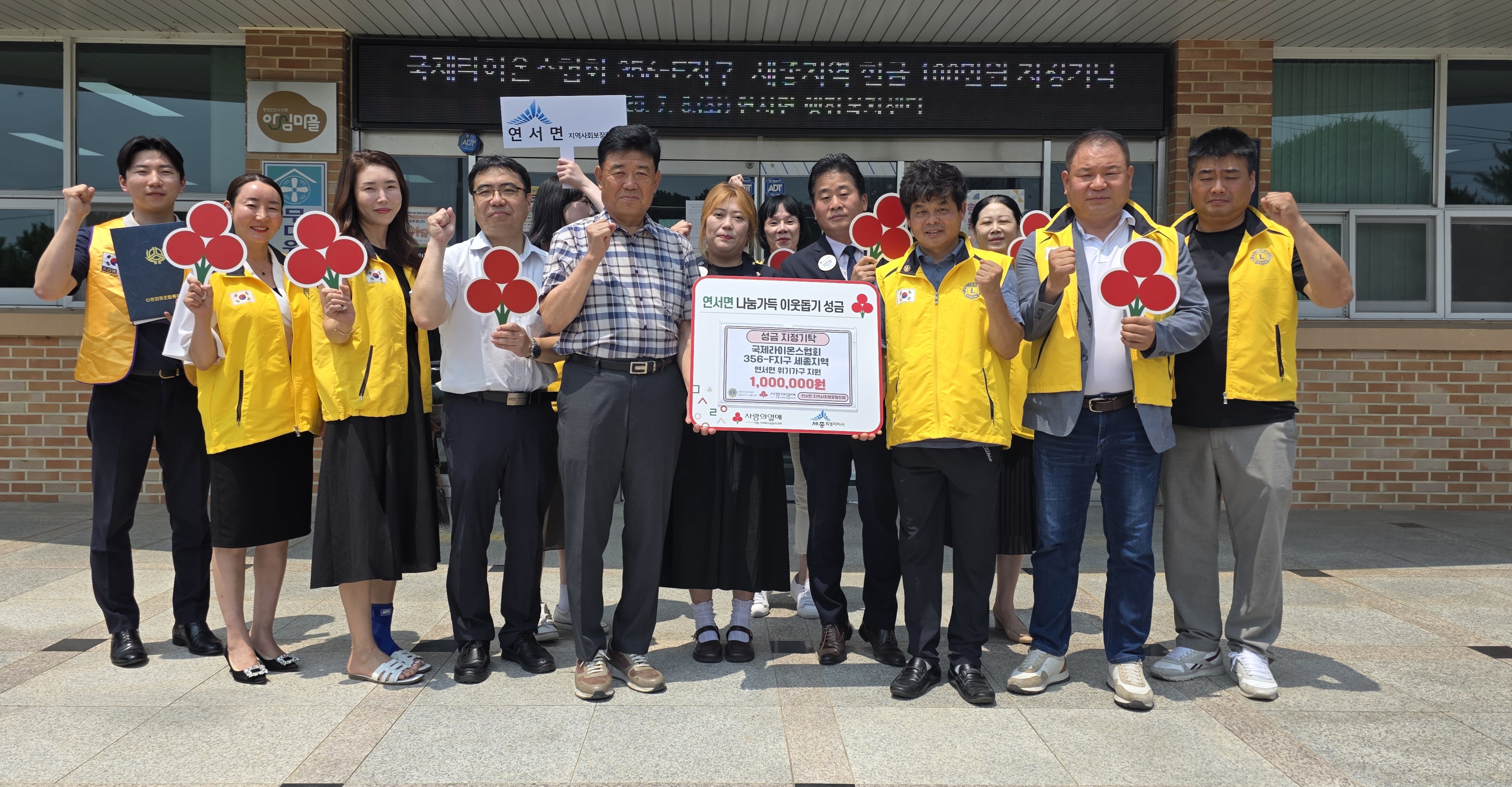 [세종타임즈] 국제라이온스협회 356-F지구 세종지역이 8일 세종시 연서면 지역사회보장협의체에 이웃돕기 성금 100만 원을 전달했다.