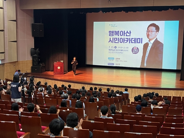 [세종타임즈] 아산시가 15일 평생학습관 아산아트홀에서 ‘행복아산 시민아카데미’ 세 번째 강연으로 김상욱 물리학과 교수의 ‘물리학이 우주와 인간에 대해 알려준 것들’ 특강을 진행했다.