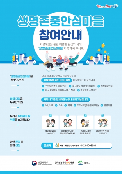 [세종타임즈] 계룡시는 이달부터 자살 예방과 생명존중 문화 확산을 위해 지역 내 13개 기관과 함께 ‘생명존중 안심마을’ 조성에 본격 나선다고 밝혔다.