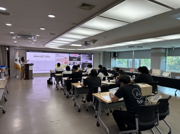 1부에서는 ㈜아트블렌딩 장윤주 대표가 관광기념품 브랜딩 및 마케팅 관련 전문 강의를 진행했다.