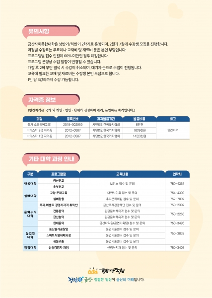 과정별 모집 인원 등 자세한 내용은 금산평생학습포털에서 확인할 수 있다.