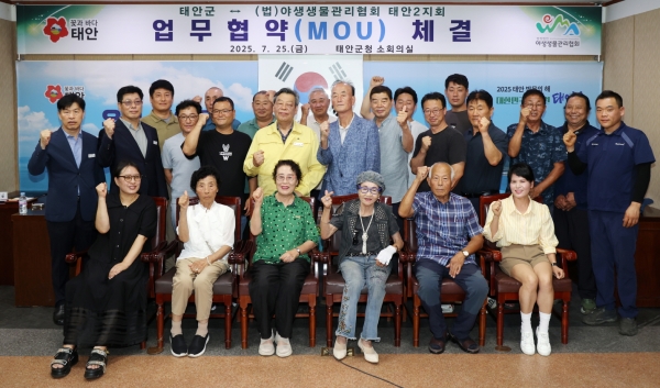 군은 지난 25일 군청 소회의실에서 가세로 군수와 야생생물관리협회 태안2지회 강두식 지회장 및 회원 등 20여명이 참석한 가운데 ‘태안군-야생생물관리협회 태안2지회 업무협약식’을 개최했다고 밝혔다.