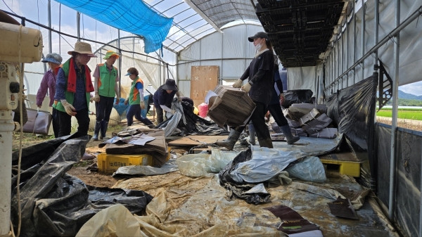 자원봉사자들은 병천·광덕·풍세·수신면과 신당동 등 집중호우 피해지역을 찾아 침수 주택 내 토사물 제거, 비닐하우스 정리, 가재도구 세척, 쓰레기 수거 등 복구작업에 나섰다.