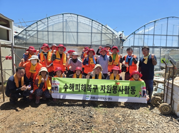 특히 계룡시 자원봉사자와 공무원 20여명은 침수된 농지와 파손된 비닐 자재 등을 정리하며 피해 농가의 조속한 일상 회복을 도왔다.