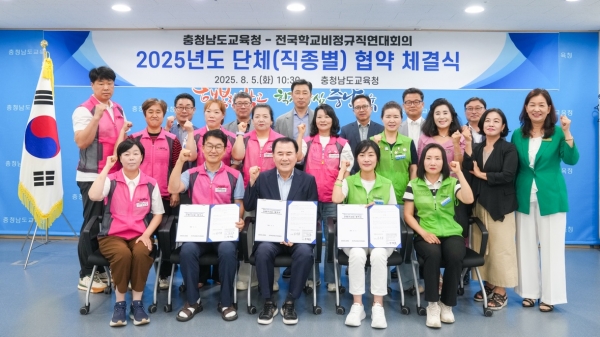 [세종타임즈] 충남교육청은 2025년 8월 5일 도교육청 회의실에서 전국학교비정규직연대회의와 단체 협약을 체결했다.