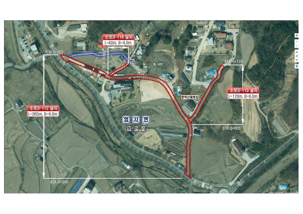 공사 대상은 향한리 일대 도시계획도로 소로3-112호, 소로3-113호, 소로3-114호로 분류된 3개 노선이다.