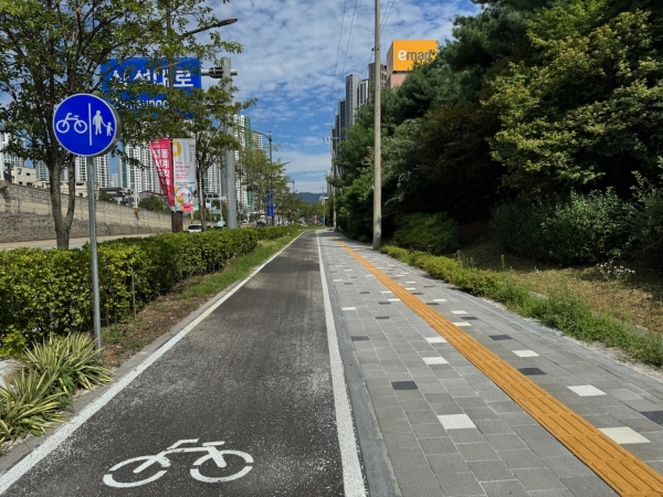 기존 자전거도로를 안전성과 편의성을 높인 분리형 구조로 재정비해 보행자와 차량, 자전거 이용자의 동선을 명확히 구분했다.