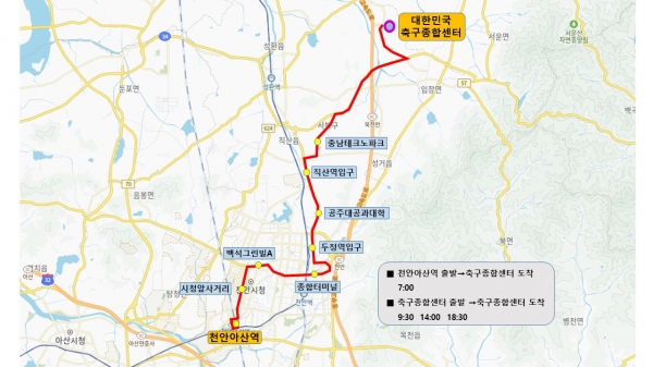 [세종타임즈] 천안시는 다음 달부터 도심순환급행버스 15번 노선과 도심에서 대한민국 축구종합센터를 오가는 시내버스 442번 노선을 신설해 운행한다고 18일 밝혔다.
