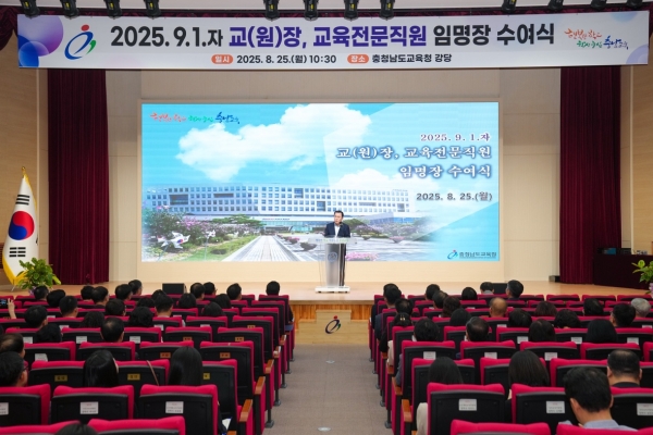 [세종타임즈] 충남교육청은 지난 25일 2025.9.1.자 인사 발령에 따른 교장, 교육전문직원에 대해 임명장을 25일 도교육청 대강당에서 수여했다.