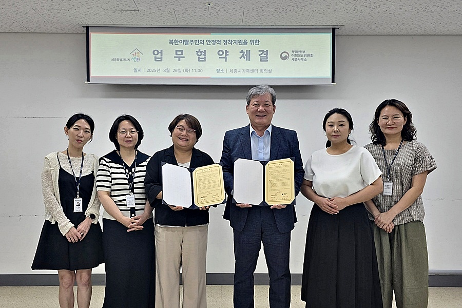 [세종타임즈] 행정안전부 이북5도위원회 세종사무소(소장 홍근진)와 세종시가족센터(센터장 하미용)가 북한이탈주민의 안정적인 지역사회 정착과 이북도민과의 유대 강화를 위해 협력하기로 했다.