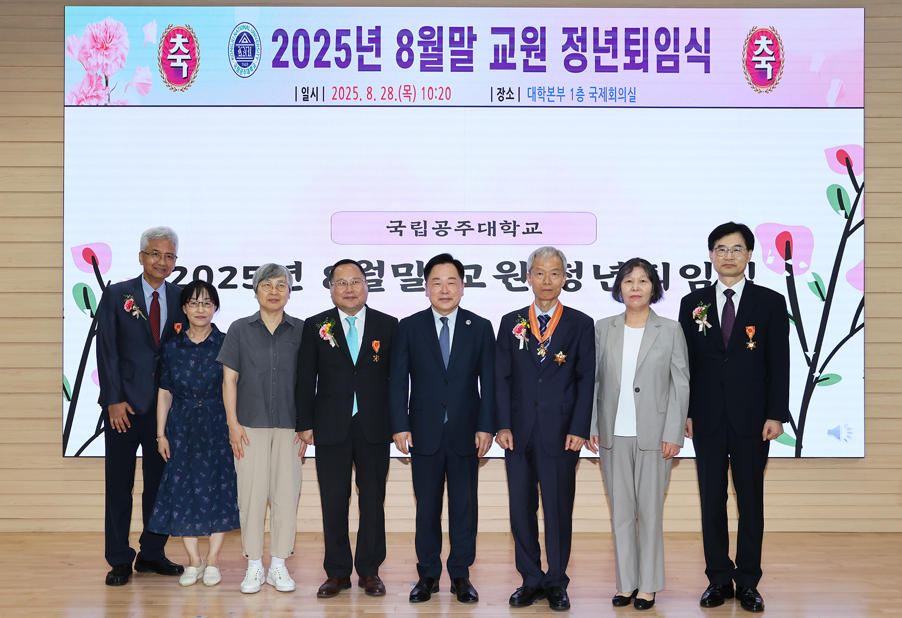 임경호 총장은 “국립공주대의 발전은 교수님들의 열정과 사명감 덕분이었다”며 “정든 강단은 떠나시지만, 남겨주신 발자취와 가르침은 대학의 역사와 후학들에게 길이 남을 것”이라고 감사와 축하를 전했다.