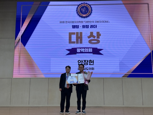 안 의원은 “이번 수상은 개인의 영광이 아니라 충남도민과 함께 만들어온 성과”며 “앞으로도 지역의 미래를 위한 실질적 정책 대안을 발굴하고 지방자치의 가치를 높이는 데 최선을 다하겠다”고 소감을 밝혔다.