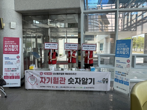 논산시보건소는 관내 산업체, 대학교, 육군훈련소 입영문화제 등 다양한 기관 및 행사와 연계해 자기혈관 숫자 측정, 홍보부스 운영 등 찾아가는 캠페인을 운영할 예정이다.