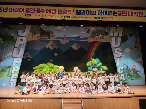 [세종타임즈] 부여군보건소는 지난 9월 3일 국립부여박물관 사비마루에서 관내 어린이집과 유치원생 360여명을 대상으로 흡연·음주 예방을 위한 뮤지컬 ‘엘리야와 함께하는 금연 대작전’ 공연을 진행했다.