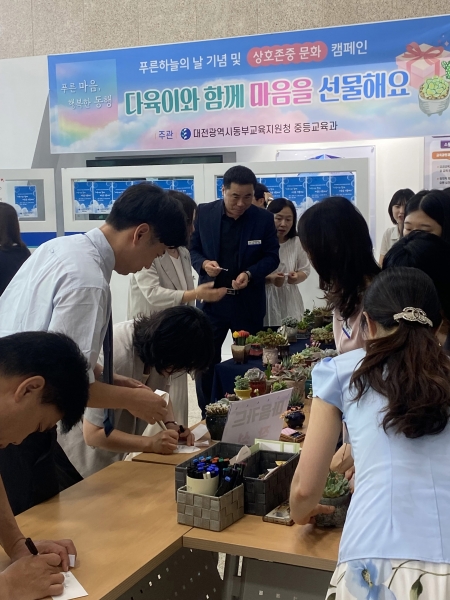 [세종타임즈] 대전동부교육지원청은 9월 4일 중등교육과 주관으로 전 직원이 참여하는 푸른하늘의 날 기념 및 상호존중 문화 캠페인을 실시했다고 밝혔다.