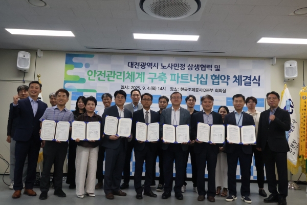 권경민 대전시 경제국장은 “이번 협약은 민간과 공공이 함께 지역 산업현장의 안전 수준을 높이는 모범적 사례”며 “정부의 중대재해 예방 정책 기조와 연계해 자율적 안전관리와 노사 협력을 통한 상생적 안전 문화 확산을 적극 뒷받침하겠다”고 강조했다.