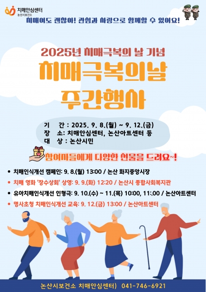 [세종타임즈] 논산시는 ‘치매여도 괜찮아 관심과 사랑으로 함께 할 수 있어요’라는 주제로 오는 9월 8일부터 12일까지 ‘2025년 치매 극복의 날’ 주간행사를 운영한다.
