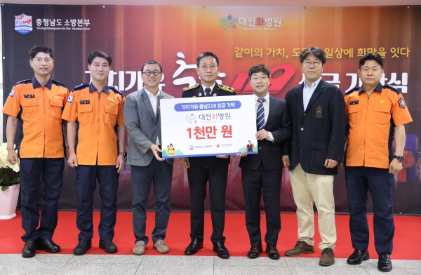 가치가유 충남119 성금 사업은 도 소방공무원과 의용소방대원이 하루 119원씩 모아 재난·사고·질병 등으로 어려움을 겪는 도민을 지원하는 것으로 이번 성금 기탁은 대전화병원이 이러한 사업 취지에 공감하면서 이뤄졌다.