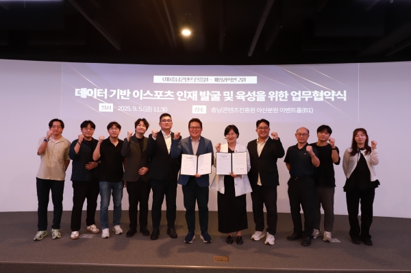 [세종타임즈] 충남콘텐츠진흥원은 게임과학연구원과 9월 5일 충남콘텐츠진흥원에서 데이터 기반의 이스포츠 인재 발굴 및 육성을 위한 업무협약을 체결했다고 밝혔다.