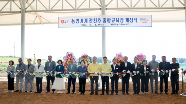 태안군은 지난 5일 태안군농업기술센터 내에서 가세로 군수 등 군 관계자를 비롯해 군의장 및 군의원, 지역 농업인, 기관·단체장, 농기계연구회원 등 50여명이 참석한 가운데 ‘태안군 농기계종합교육장’ 개장식을 개최했다고 밝혔다.