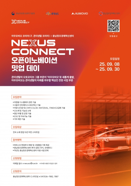 [세종타임즈] 충남창조경제혁신센터와 아우모비오 코리아는 미래 모빌리티 핵심 분야 스타트업을 발굴·육성하기 위해 ‘2025 아우모비오 코리아 x 충남창조경제혁신센터 Nexus Conncect 오픈이노베이션 밋업 데이’ 참여 기업을 9월 30일까지 모집한다고 밝혔다.