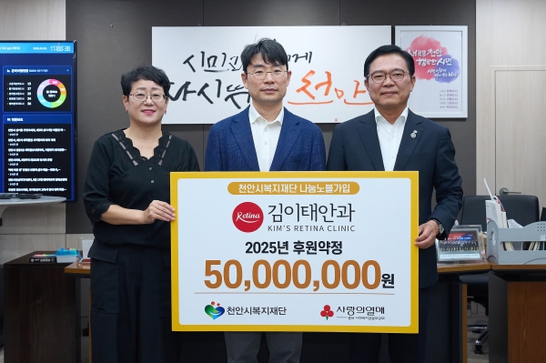 김이태 원장은 “최근 사회문제인 고립 가구 지원에 도움이 되기 위해 후원을 결심하게 됐다”며 “앞으로도 천안시의 복지정책 방향에 발맞춰 사회문제 해결에 도움이 되고자 노력할 것”이라고 말했다.