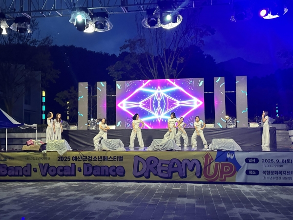 [세종타임즈] 예산군청소년복지재단은 지난 6일 복합문화복지센터 다목적광장에서 청소년들의 재능과 열정을 한껏 발산할 수 있는 ‘2025 예산군청소년페스티벌 드림-업’을 성황리에 개최했다.
