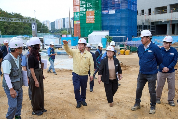 주요 공원시설로는 다목적 잔디마당, 실내체육관, 숲속 힐링원, 공원을 남북으로 관통하는 도로 등이 포함되어 있으며 이번 현장 방문에서는 실내체육관 조성 현황과 공원을 가로지르는 신설도로 터널 구간 등을 집중적으로 점검했다.