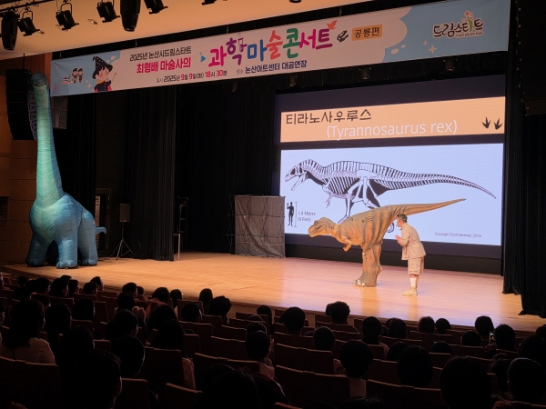 [세종타임즈] 논산시는 지난 9일 논산아트센터에서 드림스타트 대상 아동 및 학부모, 일반아동 등 700여명이 함께한 가운데, 2025년 드림스타트 ‘오리지널 과학 마술 콘서트 공룡편’ 공연을 개최했다.