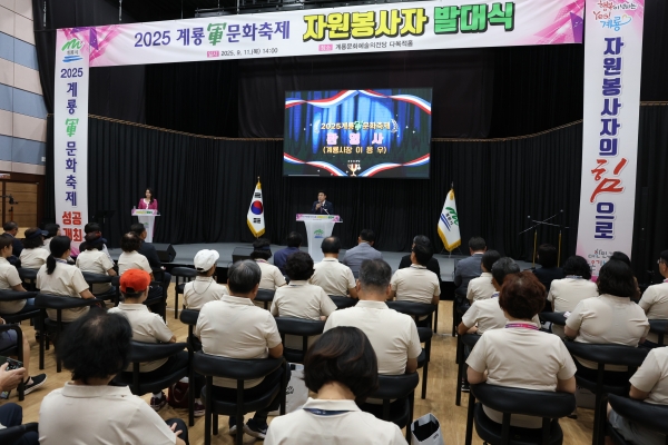 [세종타임즈] 계룡시는 지난 11일 계룡문화예술의전당 다목적홀에서2025계룡軍문화축제 자원봉사자 발대식을 열고 행사 성공개최를 위한 본격 활동에 돌입했다고 밝혔다.