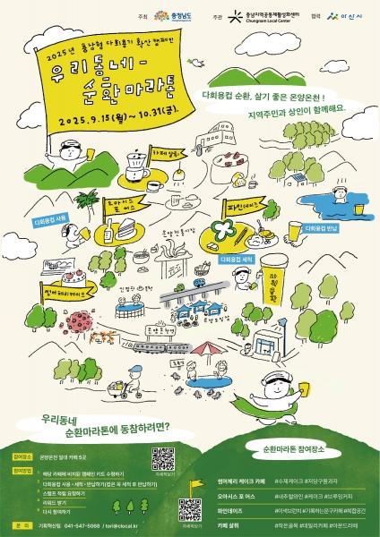 [세종타임즈] 충남지역공동체활성화센터는 아산시와 협력해 온양온천 일대에서 충남형 다회용기 확산 캠페인 ‘우리동네 순환 마라톤’을 9월 15일부터 10월 31일까지 온양온천 일대에서 운영한다고 밝혔다.