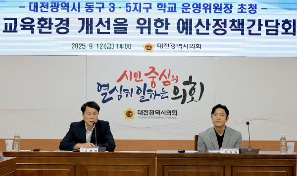 [세종타임즈] 대전시의회 교육위원회는 12일 시의회 3층 소통실에서 동구 3·5지구 학교 운영위원장 초청 교육환경 개선을 위한 예산정책간담회를 개최했다.
