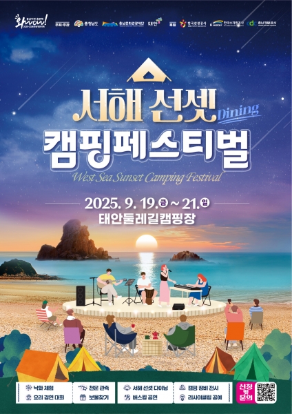 [세종타임즈] 충남문화관광재단은 오는 2025년 9월 19일부터 21일까지 3일간 충남 태안군 이원면 둘레길캠핑장에서 ‘2025 서해 선셋 캠핑페스티벌’을 개최한다.