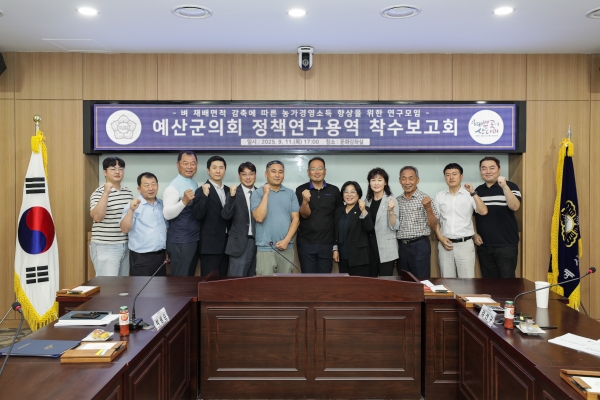 [세종타임즈] 예산군의회는 지난 11일 군의회 문화강좌실에서 ‘벼 재배면적 감축에 따른 농가경영소득 향상을 위한 정책연구용역’ 착수보고회를 개최했다.