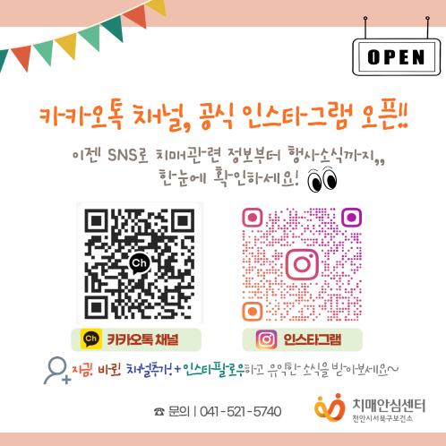 온라인 채널은 카카오톡과 인스타그램으로 치매 검사 방법과 치매 환자 및 보호자 지원제도, 센터에서 추진하는 각종 사업 등을 살펴볼 수 있다. 특히 카카오톡 채널에서는 센터 방문이 어려운 건강 취약계층과 모바일 활용을 선호하는 보호자를 대상으로 평일 오전 9시부터 오후 6시까지 1대 1 맞춤형 상담도 가능하다.