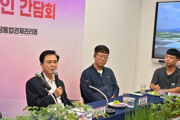이날 현장 점검에서 김 지사는 당진 스마트팜 사관학교 현황을 듣고 임대 스마트팜 시설과 재배 작목 등을 살핀 뒤, 청년농과 간담회를 가졌다.