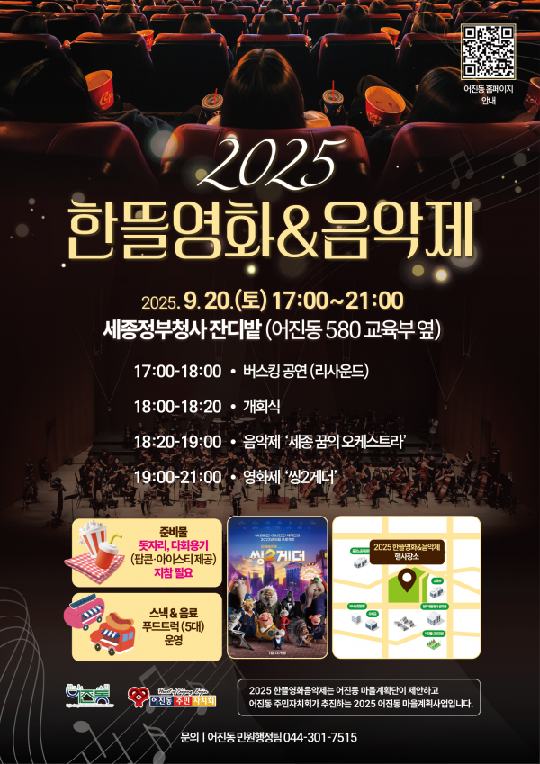 [세종타임즈] 세종시 어진동과 어진동 주민자치회가 오는 20일 오후 5시 정부세종청사 잔디밭에서 ‘2025 한뜰영화&음악제’를 개최한다.