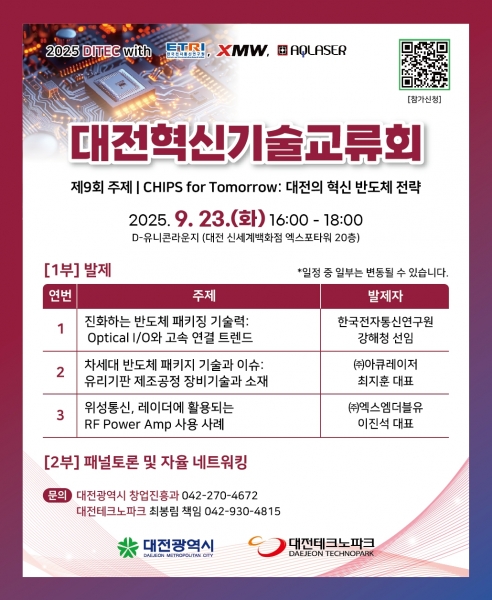 1부 발표 세션에서는 △ETRI 강해청 선임연구원이 ‘진화하는 반도체 패키징 기술력’을 주제로 최신 동향을 발표하고 △㈜아큐레이저 최지훈 대표와 △㈜엑스엠더블유 이진석 대표가 현장의 첨단 반도체 기술 적용과 제품화 사례를 공유한다.