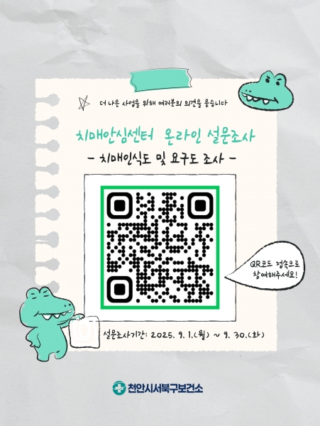 [세종타임즈] 천안시 서북구보건소 치매안심센터는 오는 9월 30일까지 치매 인식도 및 요구도 조사를 실시한다고 17일 밝혔다.