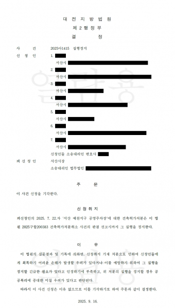 지난 16일 대전지방법원은 해당 사업에 대한 집행정지 신청을 기각하며 사업 추진에 문제가 없음을 분명히 했다.