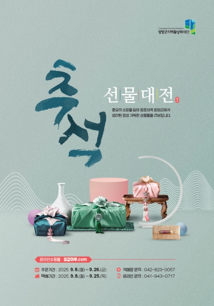 지역활성화재단 관계자는 “이번 추석 선물대전을 통해 청양군의 자랑스러운 특산품들을 더 많은 분들에게 알릴 수 있는 좋은 기회가 될 것”이라며 “다양한 특산품으로 구성된 선물세트를 통해 의미 있고 따뜻한 추석 명절을 보내시길 바라며 지역 농가와 생산업체에도 실질적인 도움이 되기를 기대한다”고 말했다.