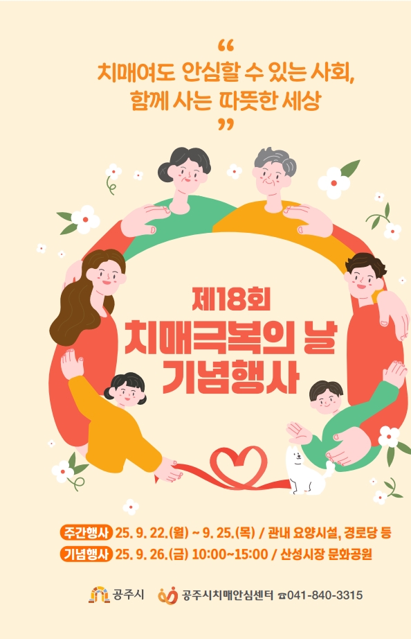 시는 이를 기념해 9월 22일부터 25일까지 지역 내 주요 거점에서 치매 인식 개선을 위한 주간행사를 운영한다.