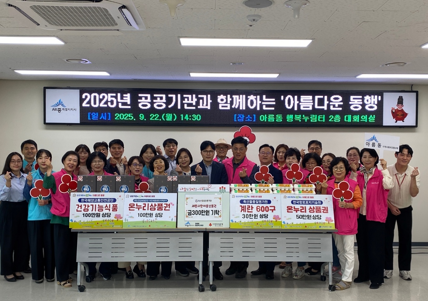 [세종타임즈] 세종시 아름동지역사회보장협의체가 22일 아름동 행정복지센터에서 관내 공공기관과 함께 추석맞이 후원 기탁식 ‘아름다운 동행’을 개최했다.